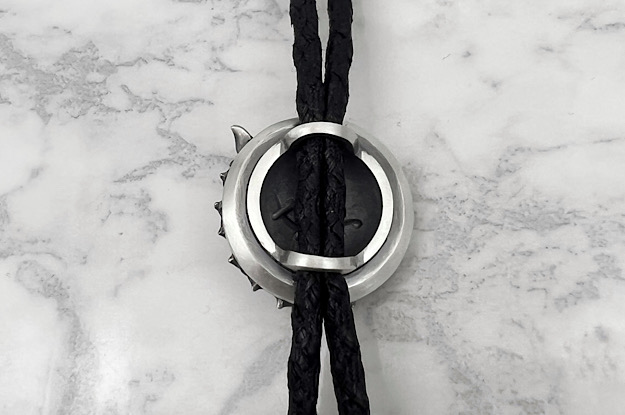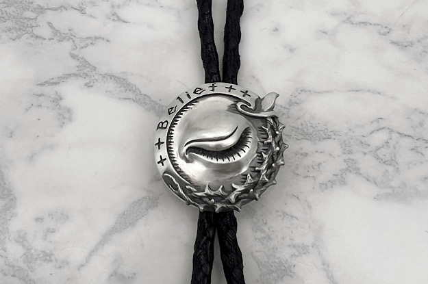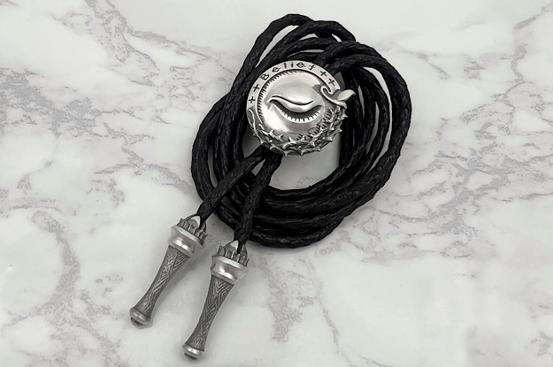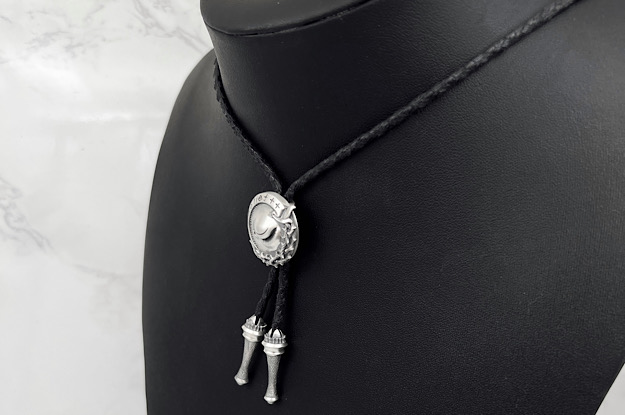 | ブラインドビリーフ "M" ループタイ レフト | IItem No.MG-NC-0008-L 総重量:約32g 正面縦寸法:25mm. 正面幅寸法:25mm. 着用寸法:〜90cm. 燻し、艶消し仕上げ