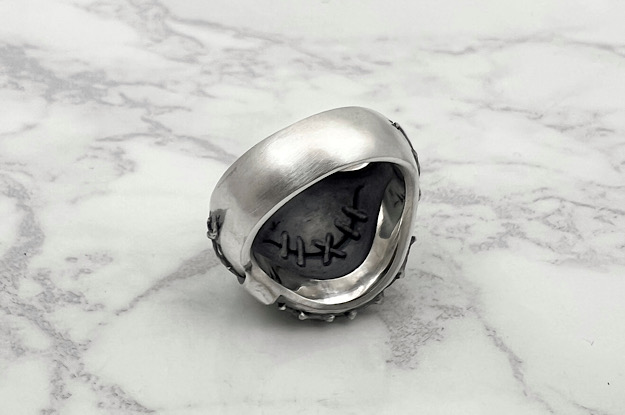 裏側に縫い目をデザインする事で「盲信」を表現しました。