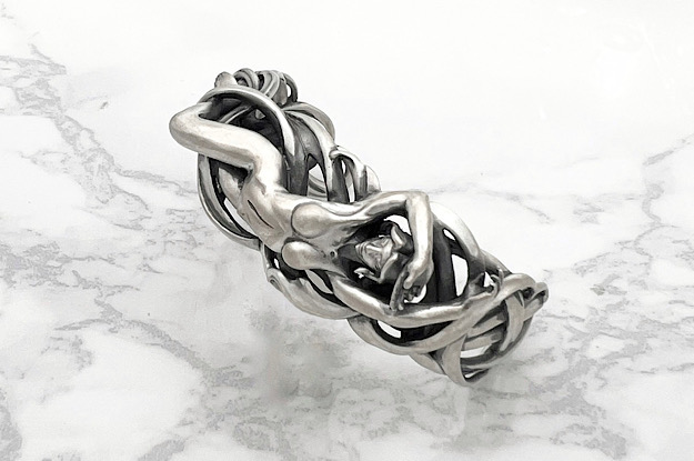 【特権】をテーマに製作しました。 「存在自体が崇高とされるのは美しいものの特権である」という考えの基、女性像を用いて美しさをデザインしました。 女性像はもちろん、髪の曲線美にもこだわりました。 また女性像は裏抜きをすることなく全身を造形してあるため、どの角度からでも立体的です。