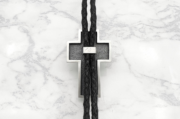 | クルシフィクシャン2nd "M" ループタイ | IItem No.MG-NC-0006 総重量:約46g 正面縦寸法:49mm. 正面幅寸法:25mm. 着用寸法:〜90cm. 燻し、艶消し仕上げ