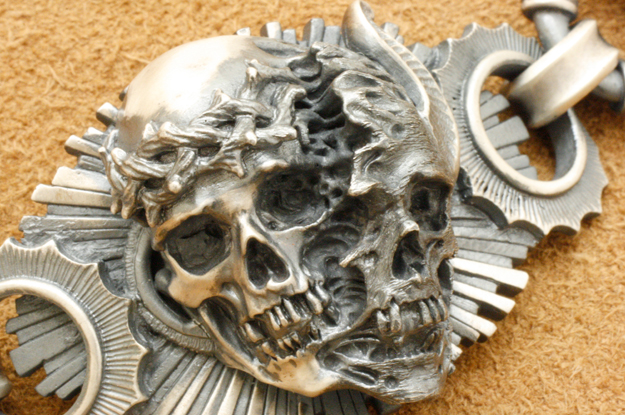 分離スカルを主役にワンメイクカスタムブレスレットを製作しました。後光の中央部分は重量軽減のため中央部