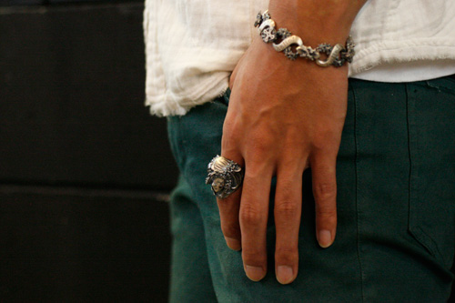 ットしています。またリングの腕は全体に岩肌のエングレーブを施してあります。