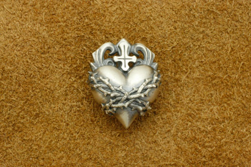 キリスト教のシンボルであるセイクリッドハートをモチーフに製作したペンダント。【モノポリー=独占】として自身や他人の心を渡したくない、渡さないという誰にでもある独占欲をデザインに込めて製作している。デザインには、ハートを心、茨を独占欲として当人他人を問わない心の独占を表現するため、モチーフの陰影を付け、ハートはプレーンで柔らかに、茨は棘が立って食い込んでいるような造形をしている。細めの短いチェーンでの着用がおススメ。サイズ違いのモノポリーリングやモノポリーペンダントでのペアアイテムとしても使用出来る。